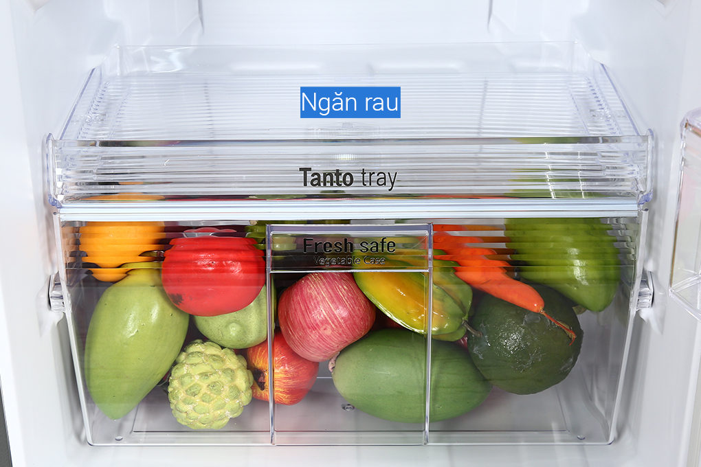 Tủ lạnh còn có ngăn rau củ Fresh Safe sẽ cung cấp nhiệt độ và độ ẩm ở trạng thái lý tưởng với rau củ nhờ thiết kế đóng kín, giúp khí lạnh không thổi trực tiếp lên thực phẩm. Nhờ vậy mà rau củ luôn tươi ngon và có độ ẩm.