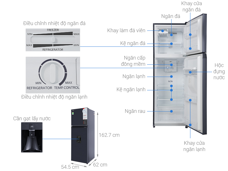 Với việc trang bị khay chứa nước riêng biệt, giúp việc lấy nước trở nên nhanh chóng mà không cần mở tủ nhiều lần. Nhờ đó tránh thất thoát hơi lạnh và tiết kiệm điện năng hơn.